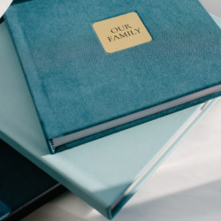 Velour covers are an excellent choice for photo books of any format or content. The soft and delicate pile of velour is delightful to the touch, making it hard to put the book down. This is the perfect option for children’s and family photo books. You can enhance the velour cover with various design elements of your choice, such as embossing, metal shields, or photo inserts.