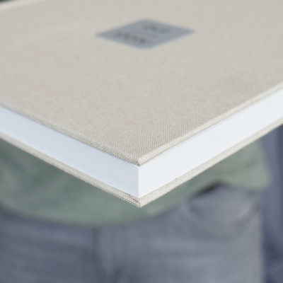 A great cover option for a photo book is a textile cover with a distinct texture. Thanks to the texture, combined with elegant colors, any photo book with such a cover will exude elegance, even without additional personalization.
